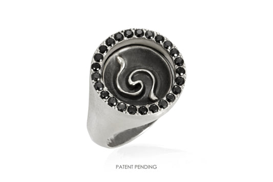 Anello Segni Doppio argento e zirconi neri