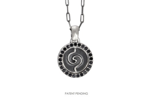 Collana con pendente Segni doppio argento e zirconi neri