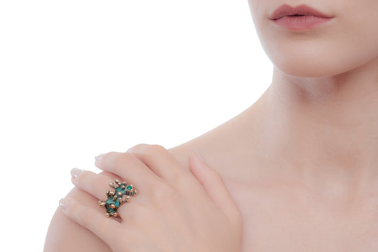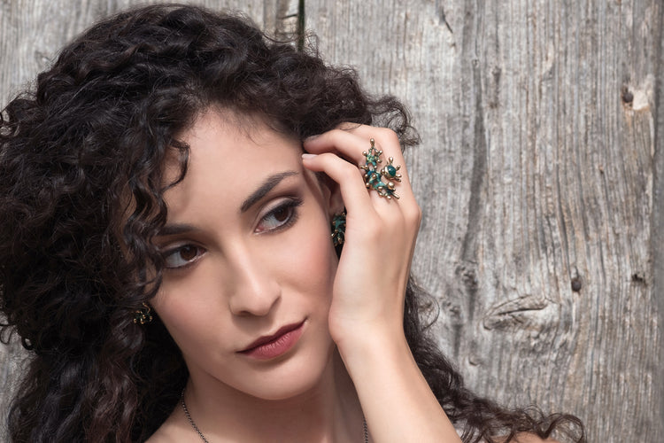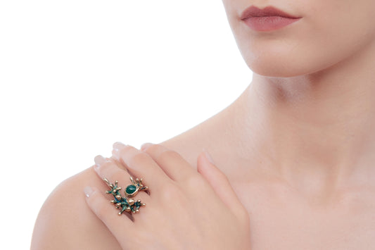 Anello Abbracci piccolo ottone patina verde e pietra o perla