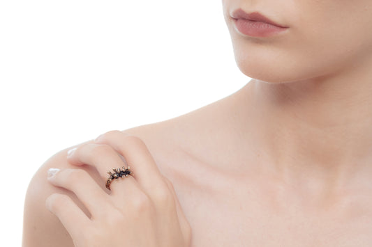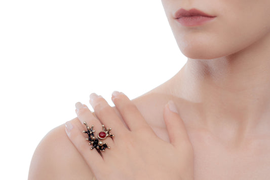 Anello Abbracci grande brunito con pietra o perla da 8 mm