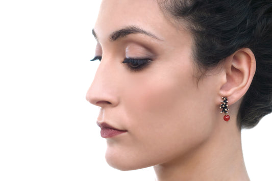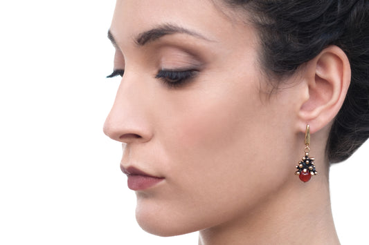 Orecchini ciondolo Abbracci bruniti con corniola o perla