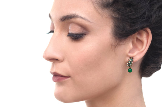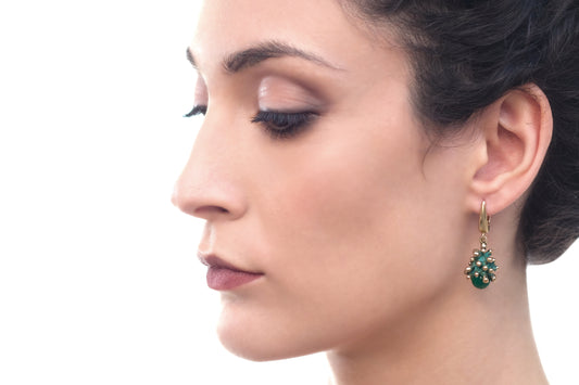 Orecchini ciondolo Abbracci patina verde con pietra o perla