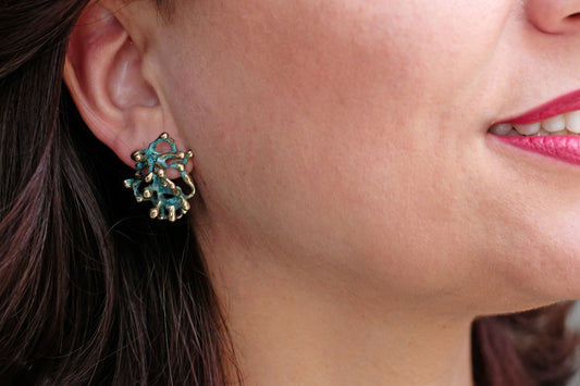 Orecchini piccoli Abbracci patina verde e pietra o perla