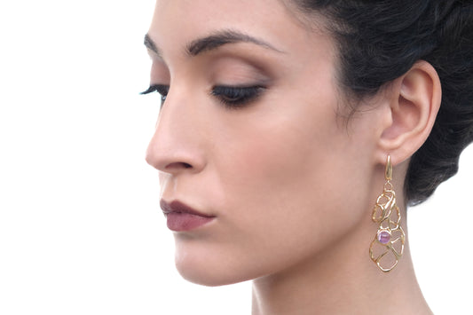 Orecchini Essential Tondo bronzo oro e ametista