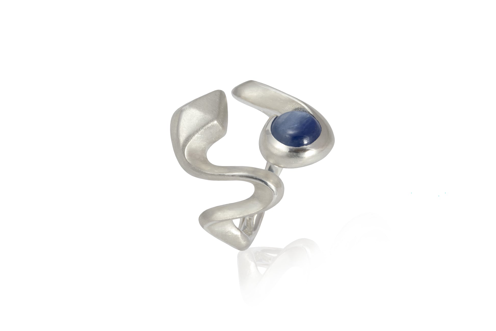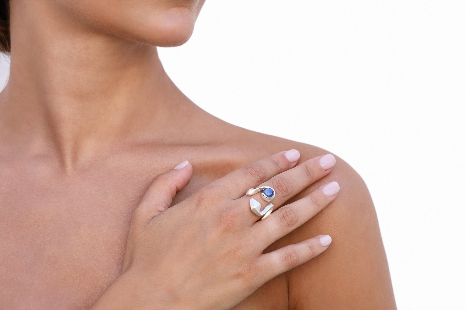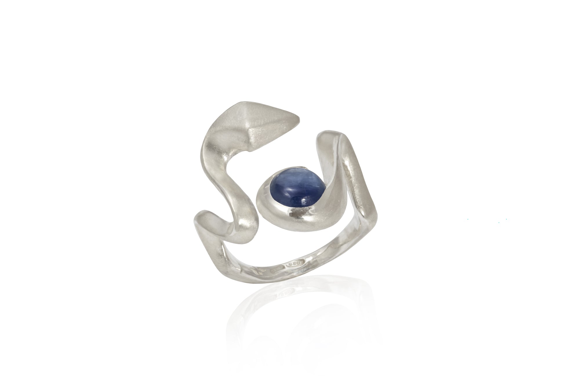 Anello esclusivo, realizzato in argento satinato e lucido impreziosito con una cianite.