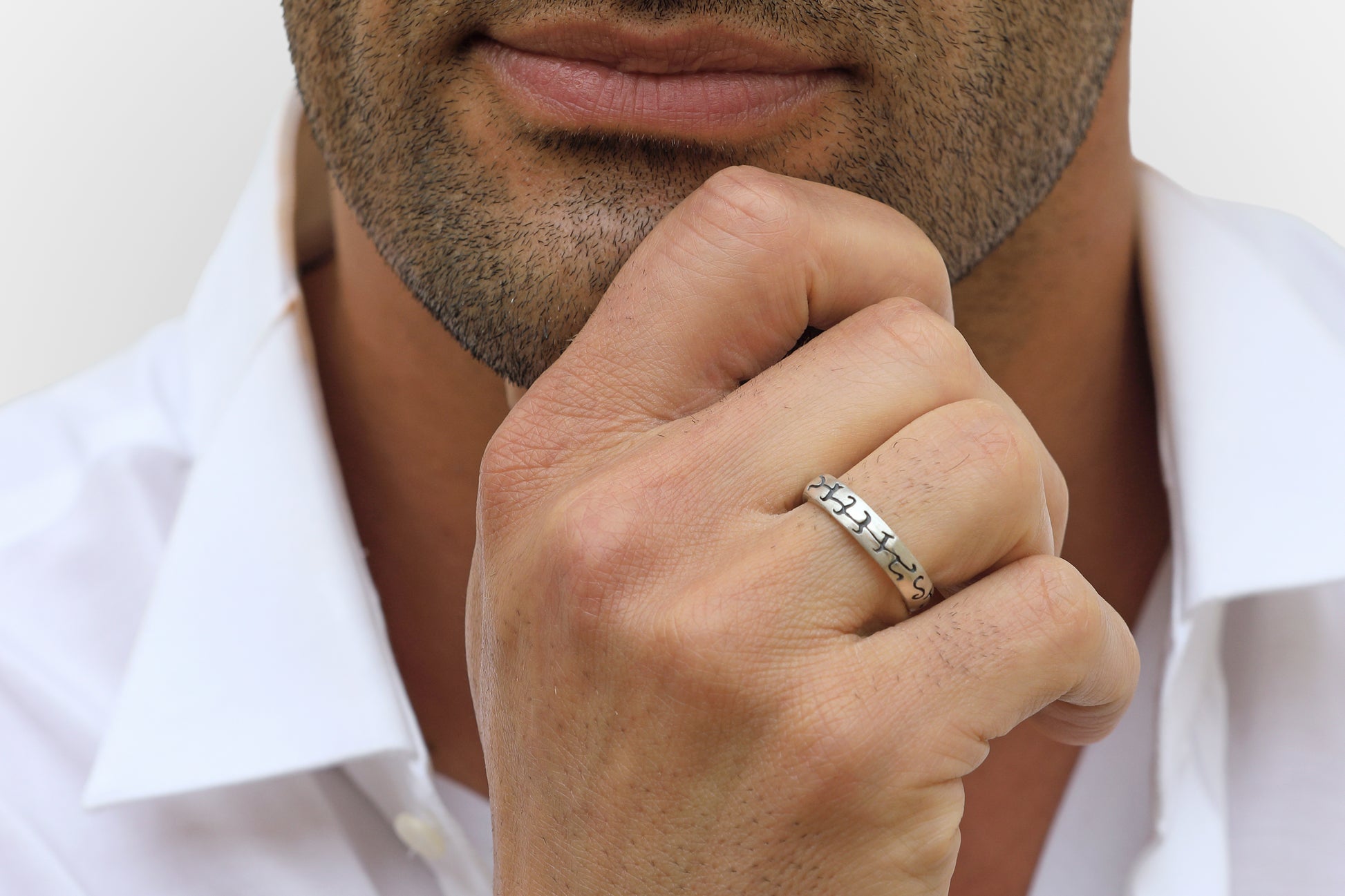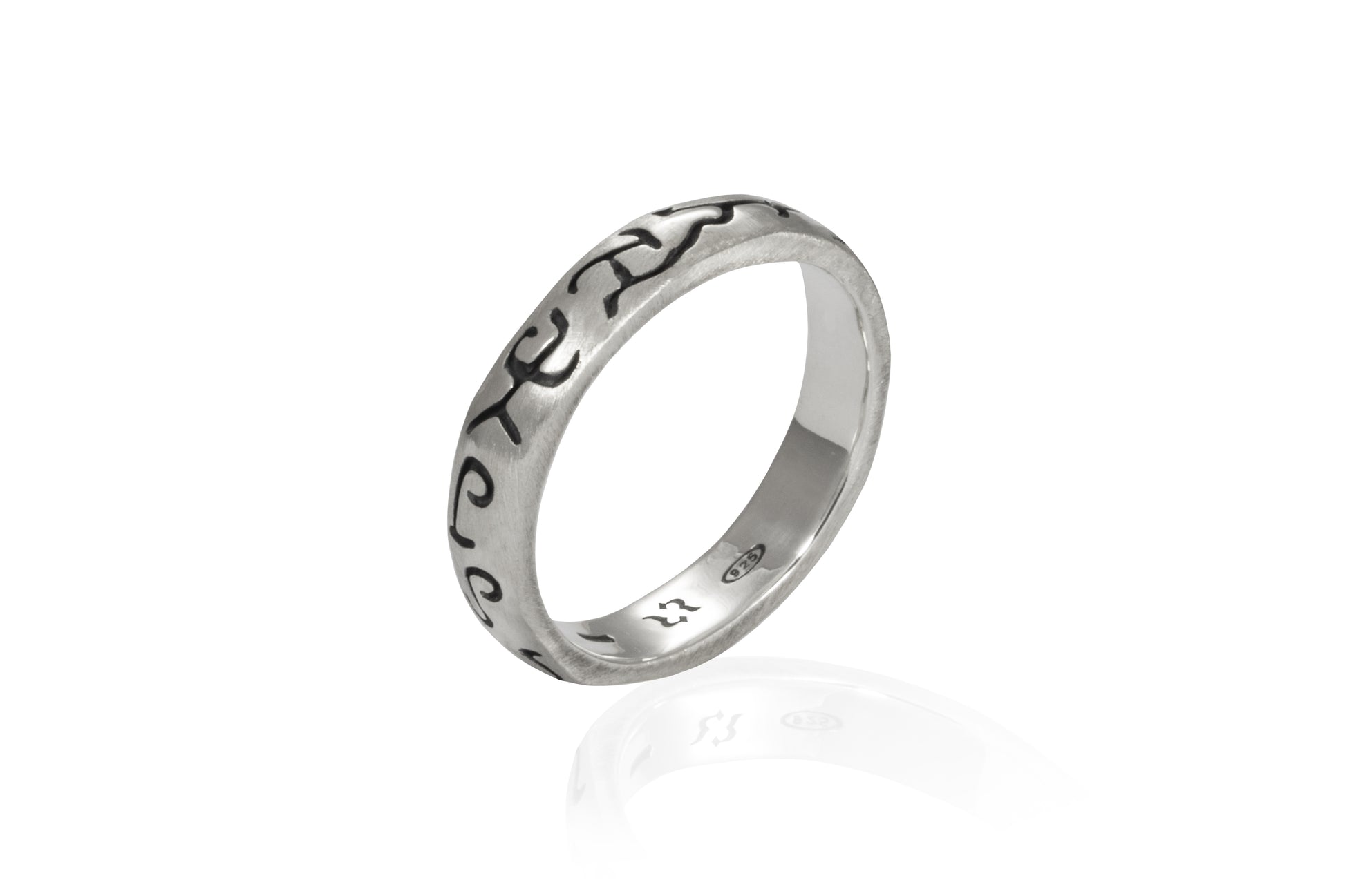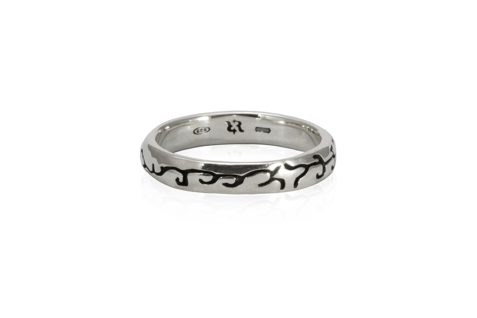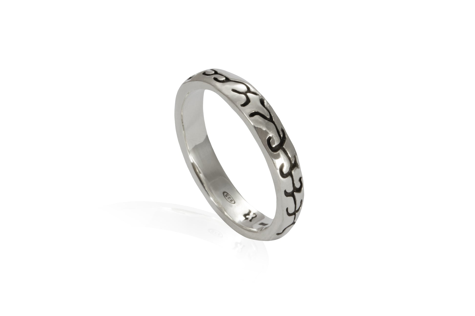 Anello fascia, esclusivo, realizzato in argento bianco lucido, oppure brunito lucido, o brunito satinato.