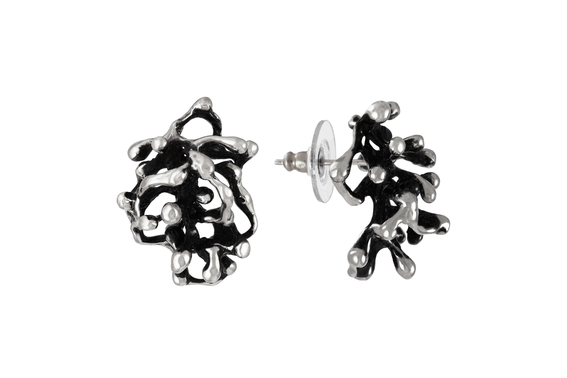 Ingombro forma singolo orecchino circa 20x30x25 mm con chiusura perno e disco di gomma.