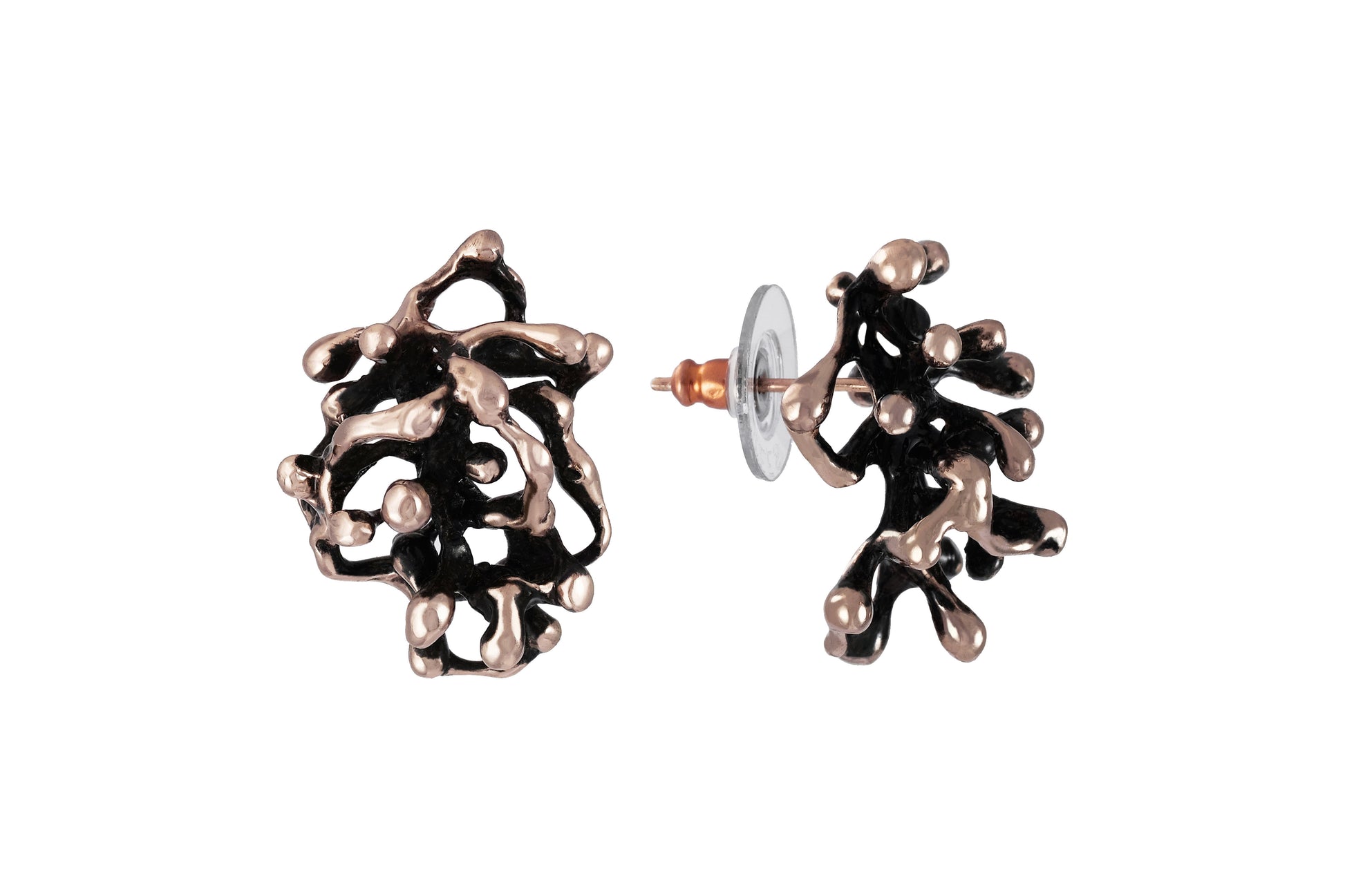 Orecchini grandi a lobo, esclusivi, realizzati in ottone brunito, o bronzo rosa brunito, o argento 925 brunito.